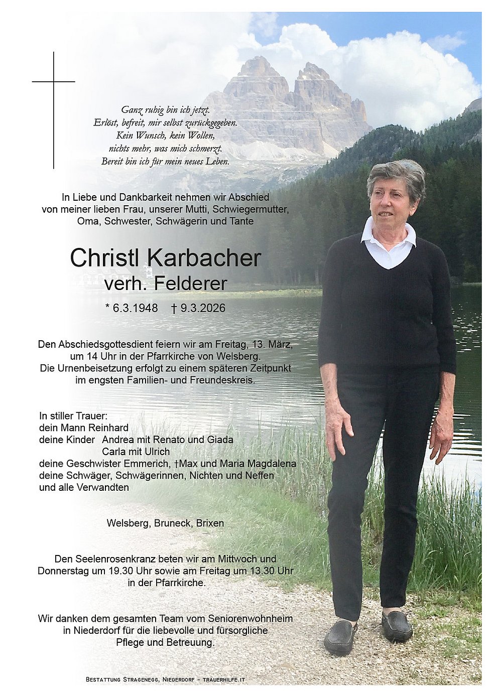 Trauerfeier: 13.03. - 14:00 Uhr Welsberg