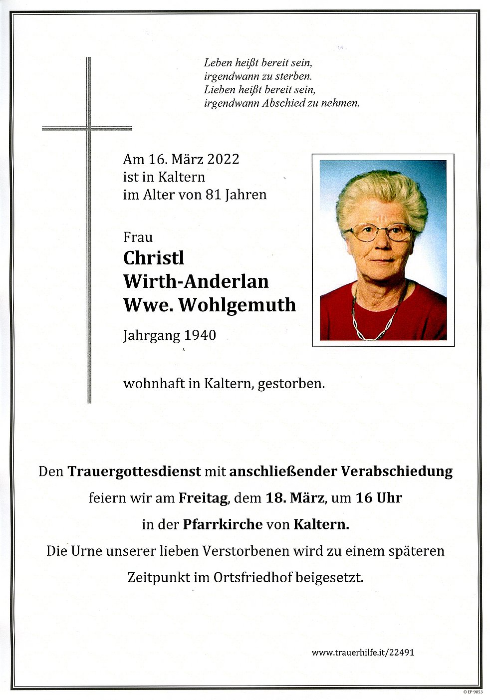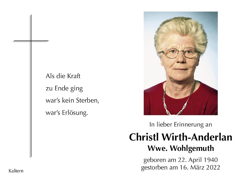 Christl Wirth-Anderlan Wwe. Wohlgemuth