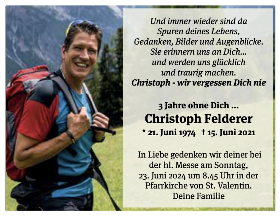 Den Seelenrosenkranz für unseren lieben Christoph beten wir am Donnerstag und Freitag um 20 Uhr in der Pfarrkirche von St. Valentin a.d.H.