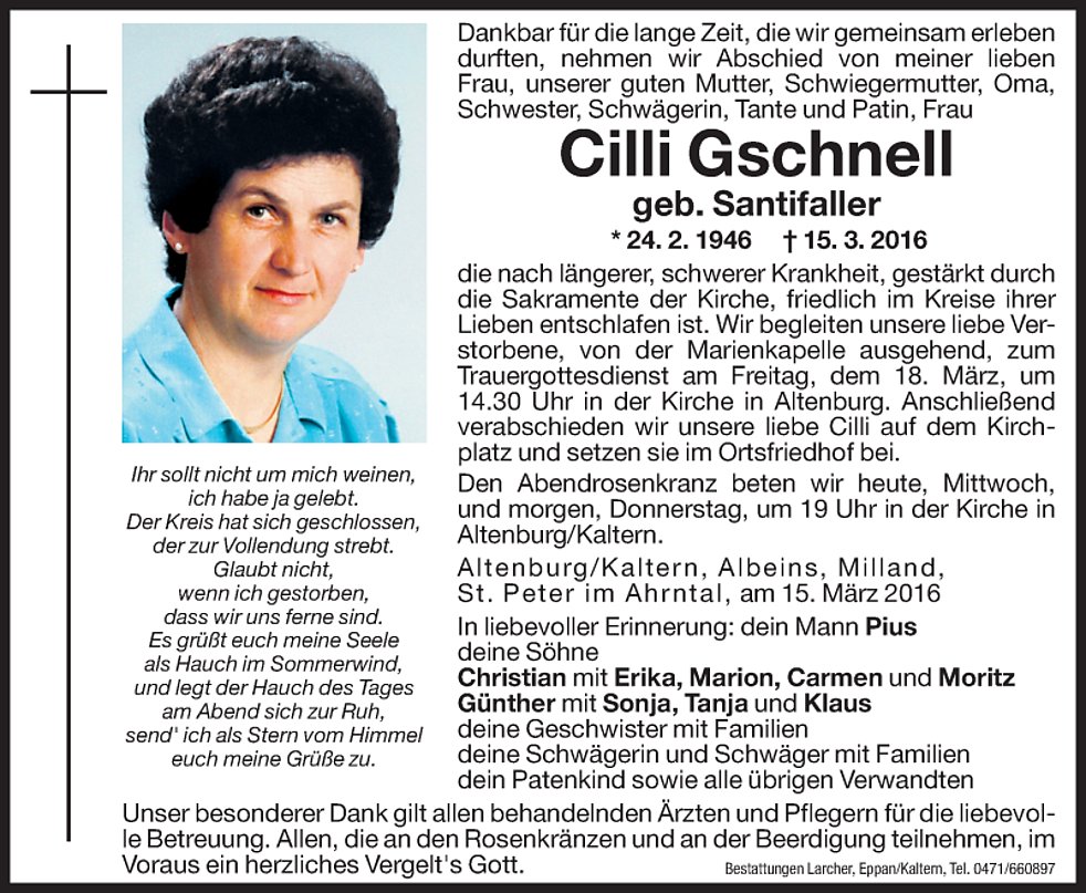 Cilli Gschnell geb. Santifaller