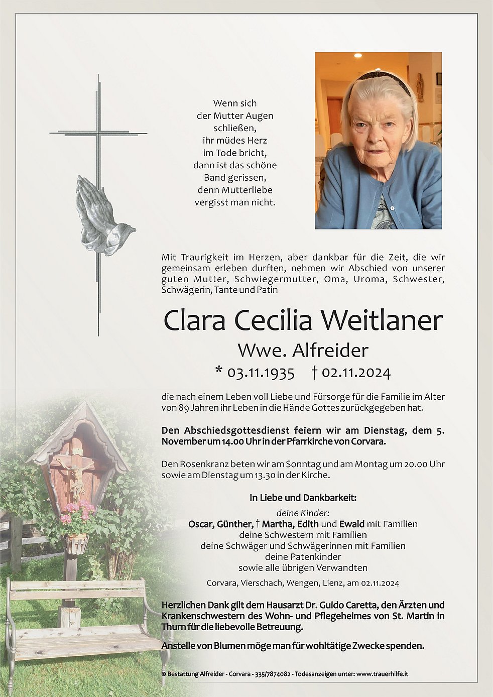 Verabschiedung: 05.11. - 14:00 Uhr Pfarrkirche Corvara