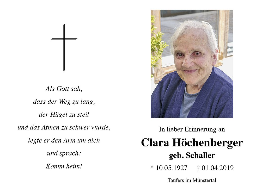 Taufers i. M. und anschließend zur letzten Ruhe auf den Ortsfriedhof.