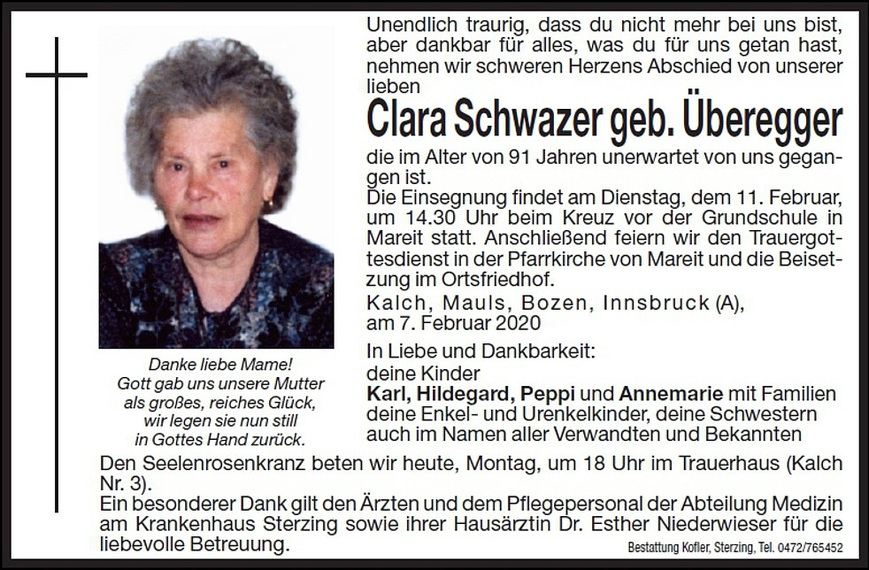Clara Schwazer geb. Überegger