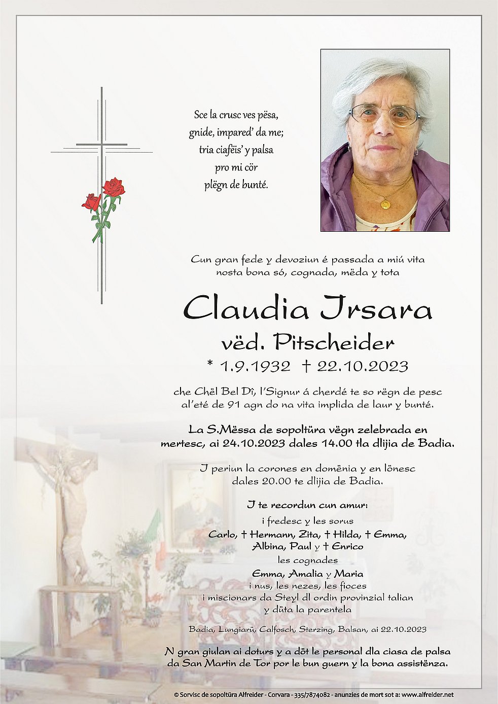 Begräbnisgottesdienst: 24.10. - 14:00 Uhr Pfarrkirche Abtei