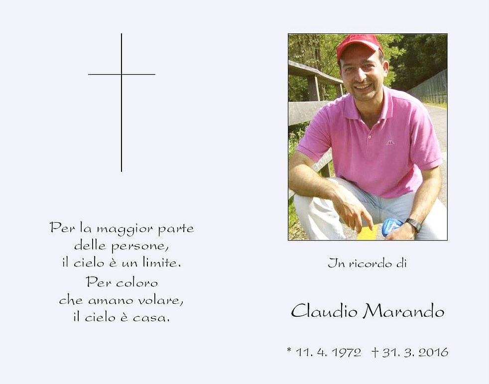 Ne danno il triste annuncio Alessandra e il figlio Luca con parenti tutti, genitori Giuseppe ed Erna con la sorella Rosanna, la nonna Anna, gli zii e le loro famiglie, cugini e parenti tutti.