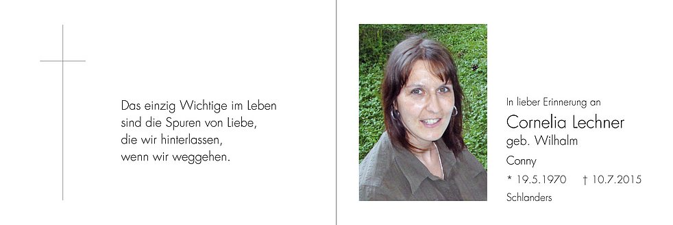 Liebe Cornelia, die Welt hot an wundervolln Menschen verlourn, weil Gott oan Engel im Himmel braucht.