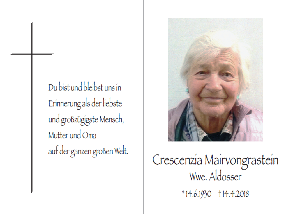 Crescenzia Mairvongrastein Wwe. Aldosser