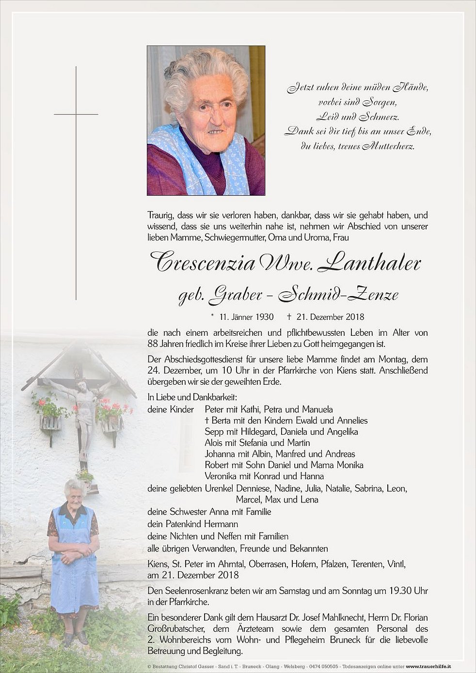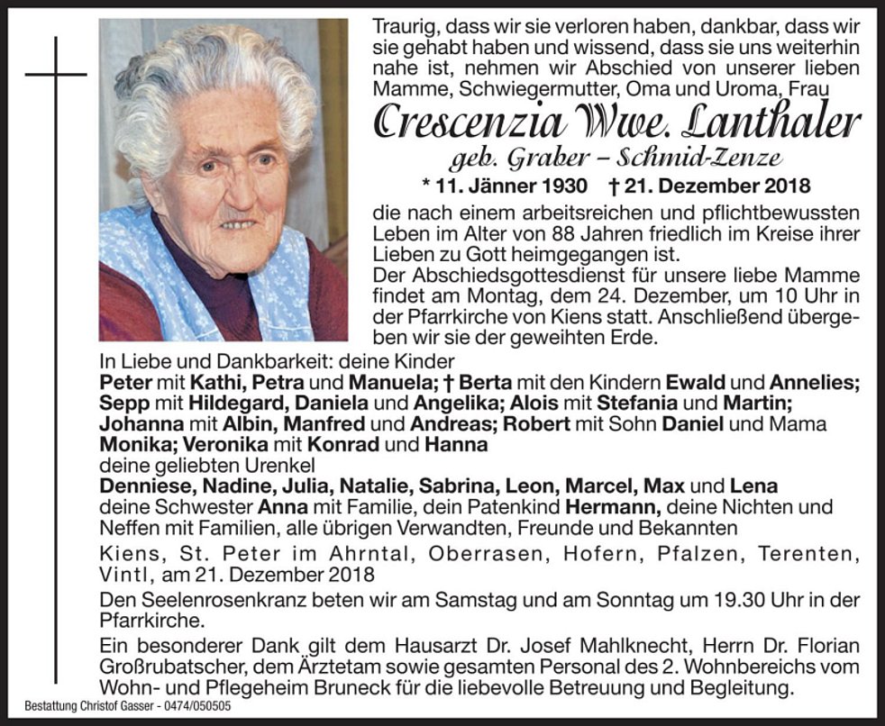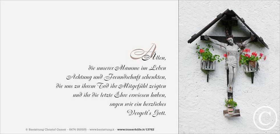 Der Abschiedsgottesdienst für unsere liebe Mamme findet am Montag, dem 24. Dezember, um 10 Uhr in der Pfarrkirche von Kiens statt. Anschließend übergeben wir sie der geweihten Erde.