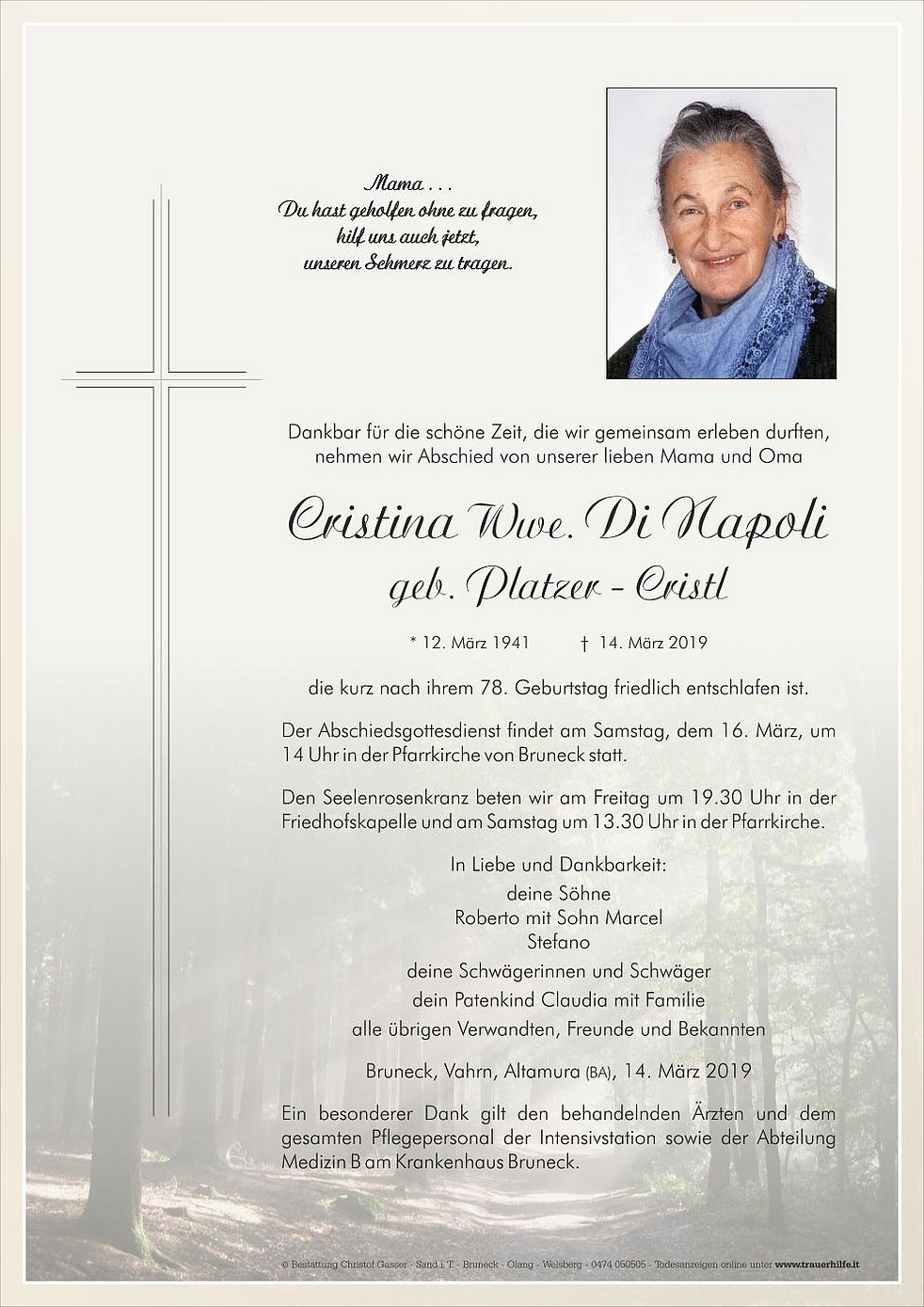 Der Abschiedsgottesdienst findet am Samstag, dem 16. März, um 14 Uhr in der Pfarrkirche von Bruneck statt.