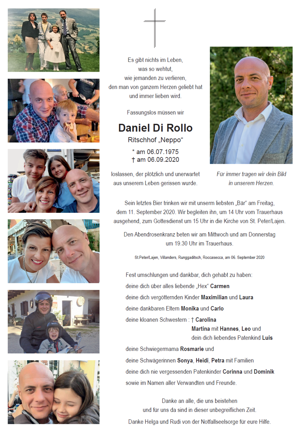 Den Abendrosenkranz beten wir heute um 19.30 Uhr in der Kirche von St. Peter/Lajen und am Mittwoch und am Donnerstag um 19.30 Uhr im Trauerhaus.