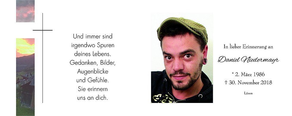 Ich möchte Euch meine Betroffenheit und mein tiefes Mitgefühl über den Verlust Eures geliebten Daniel ausdrücken und Euch viel Kraft, viel Begleitung und viele gute Gedanken wünschen.