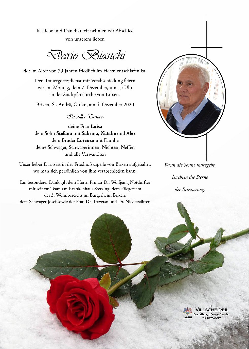 Liebe Luise! möchte Dir und Deiner Familie mein aufrichtiges Beileid zum Tod Eures lieben Gatten und Vaters aussprechen .Ich wünsche Euch allen ganz viel Kraft.Luise Cassar mit Familie.