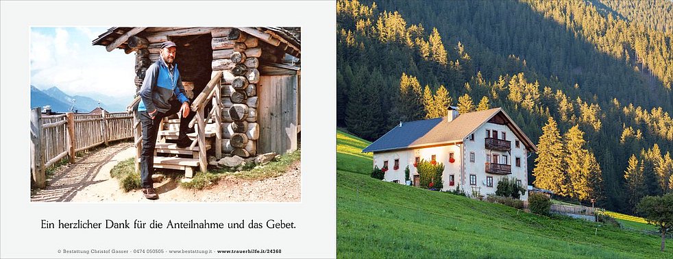 Ein herzlicher Dank geht an die Hausärztin Frau Dr. Andrea Kargruber, an die Sprengelschwestern, besonders Marion und Beatrix, an alle vom Weißen Kreuz, an die Ärzte und das Pflegepersonal der Abteilung Onkologie und Medizin am Krankenhaus Bruneck, besonders Herrn Dr. Christoph Leitner und Frau Dr. Sabine Summerer.