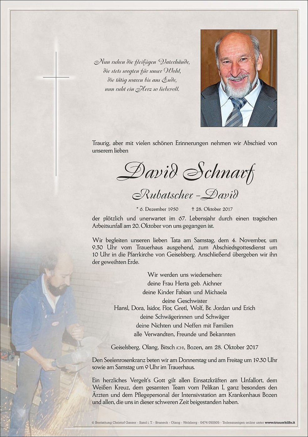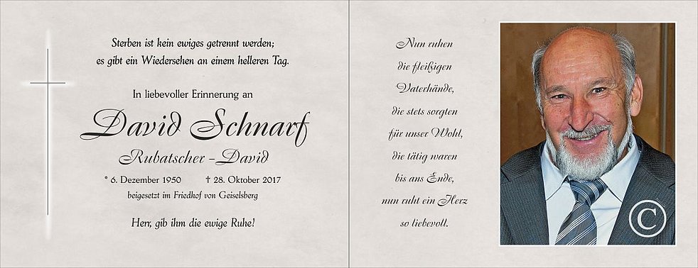 der plötzlich und unerwartet im 67. Lebensjahr durch einen tragischen Arbeitsunfall am 20. Oktober von uns gegangen ist.