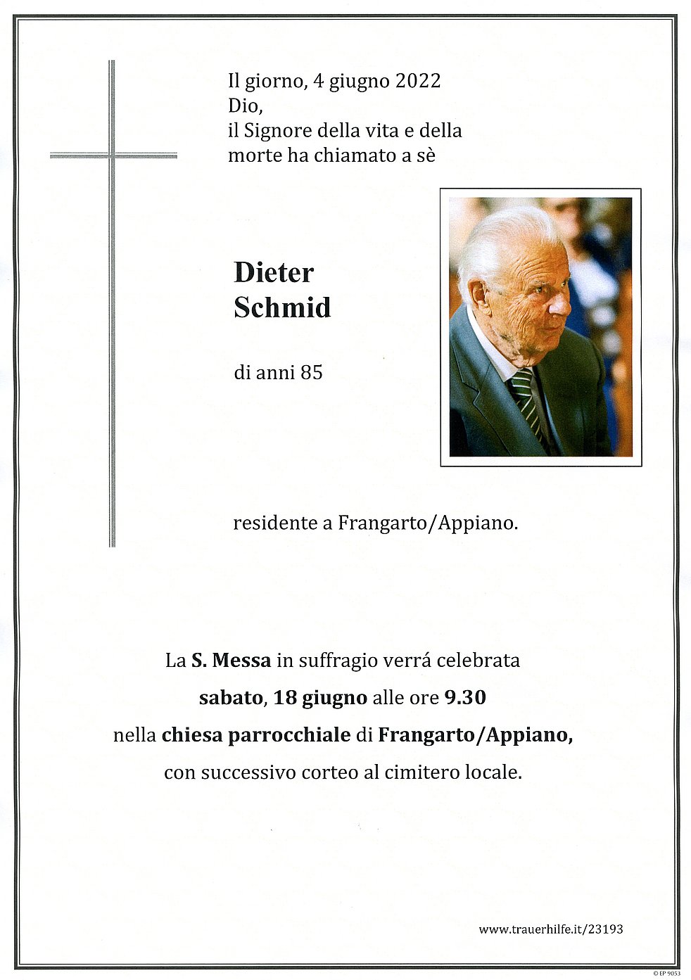 Begräbnisgottesdienst: 18.06. - 09:30 Uhr Pfarrkirche Frangart/Eppan