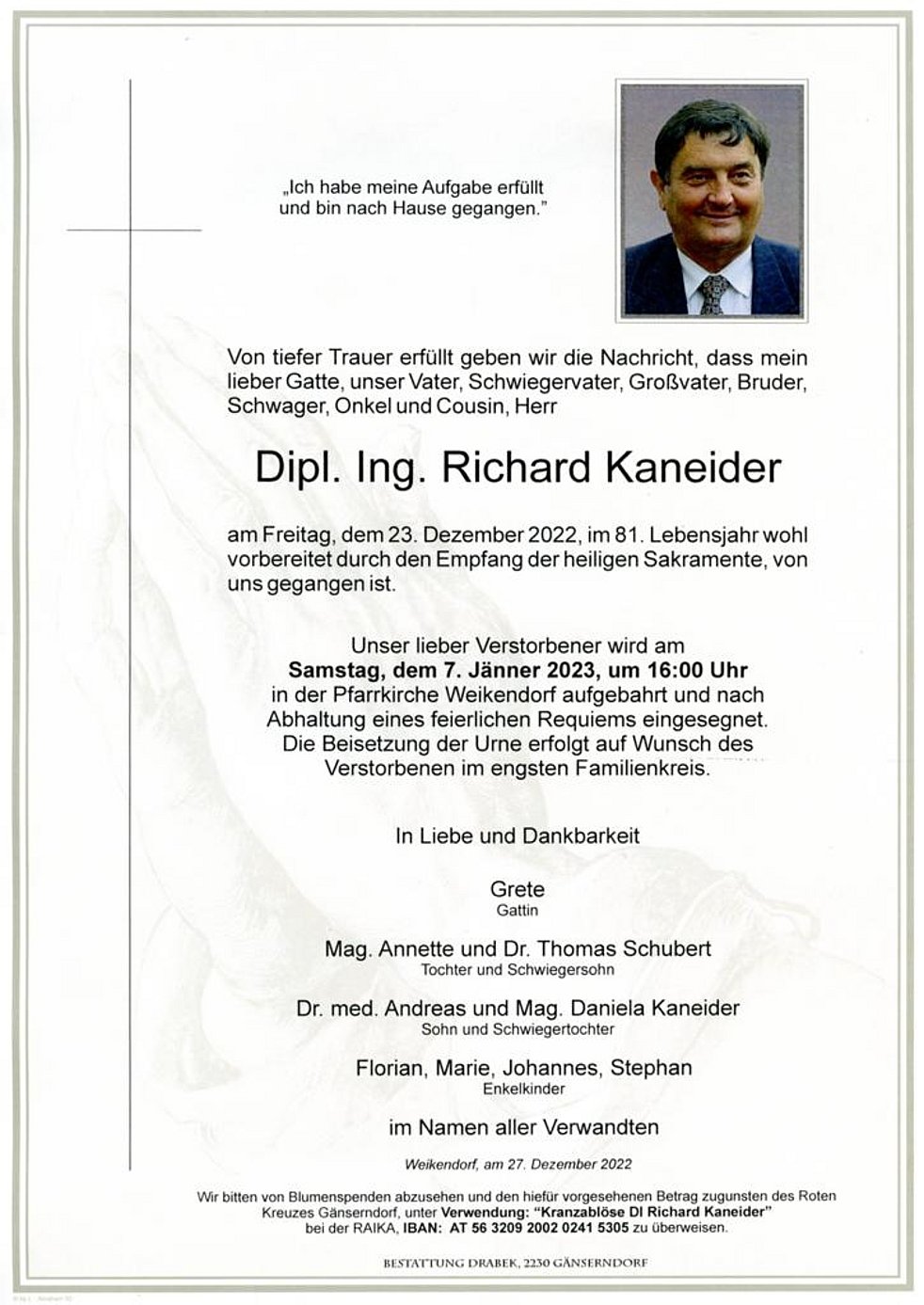 Habe Richard in meiner Wiener Zeit als einen wunderbaren Menschen öfters getroffen und jede gemeinsame Stunde mit ihm war ein Erlebnis... Danke für alles - mein herzliches Beileid der gesamten Familie