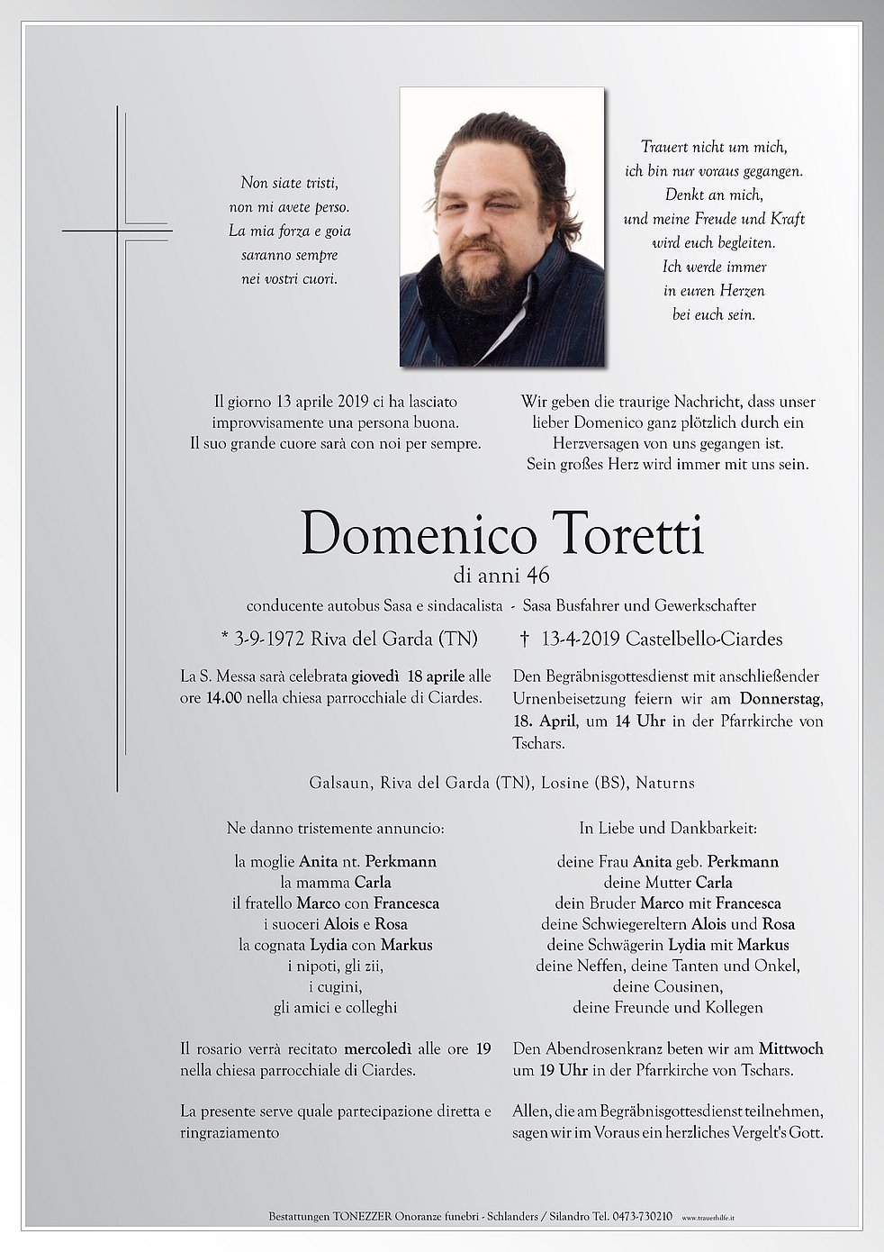 Wir geben die traurige Nachricht, dass unser lieber Domenico ganz plötzlich durch ein Herzversagen von uns gegangen ist. Sein großes Herz wird immer mit uns sein.