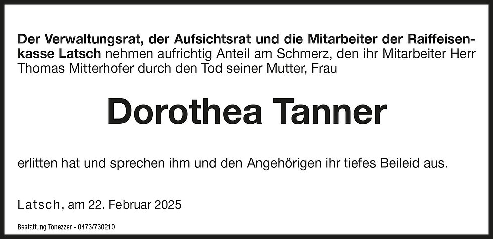 Wir drücken allen Angehörigen unser aufrichtiges und herzliches Beleid aus. Möge die Erinnerung an alles gemeinsame Schöne helfen, die Trauer zu überwinden. Der Tod ist die Grenze des Lebens, nicht aber der Liebe. Ruhe in Frieden Dora, das ewige Licht möge dir leuchten und deinen Lieben Kraft geben.
