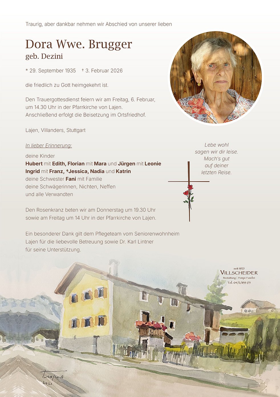 Begräbnisgottesdienst: 06.02. - 14:30 Uhr Lajen