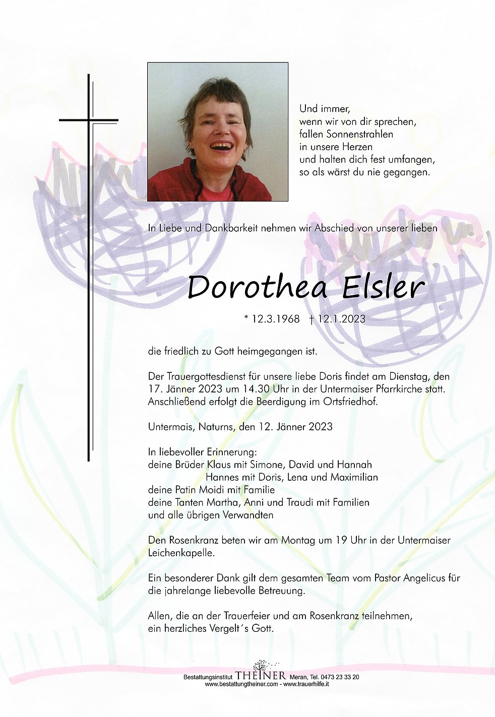 Der Trauergottesdienst für unsere liebe Doris findet am Dienstag, den 17. Jänner 2023 um 14.30 Uhr in der Untermaiser Pfarrkirche statt. Anschließend erfolgt die Beerdigung im Ortsfriedhof.