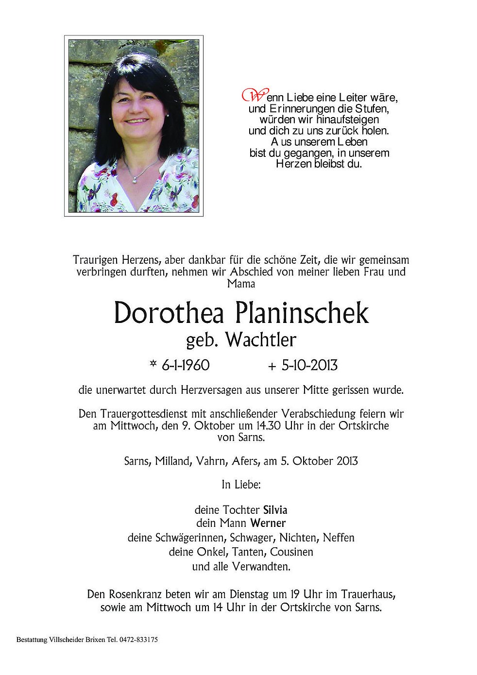 Traurigen Herzens, aber dankbar für die schöne Zeit, die wir gemeinsam verbringen durften, nehmen wir Abschied von meiner lieben Frau und Mama