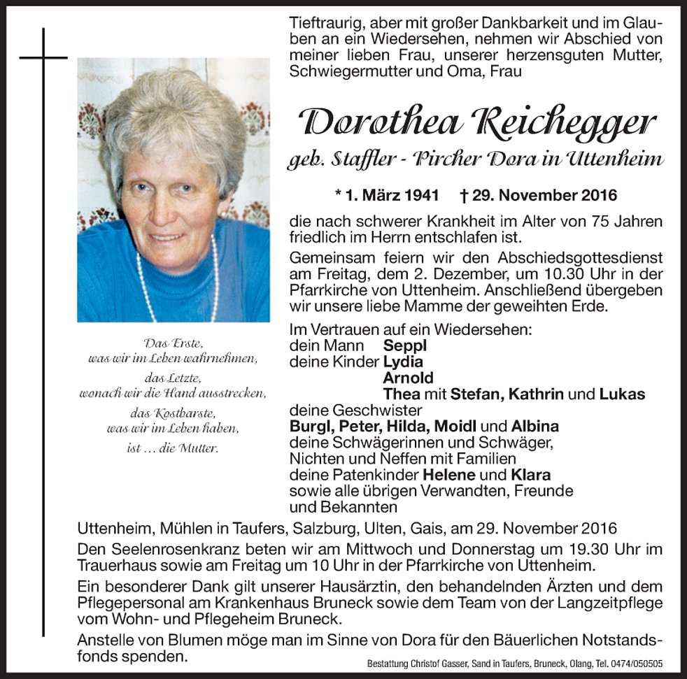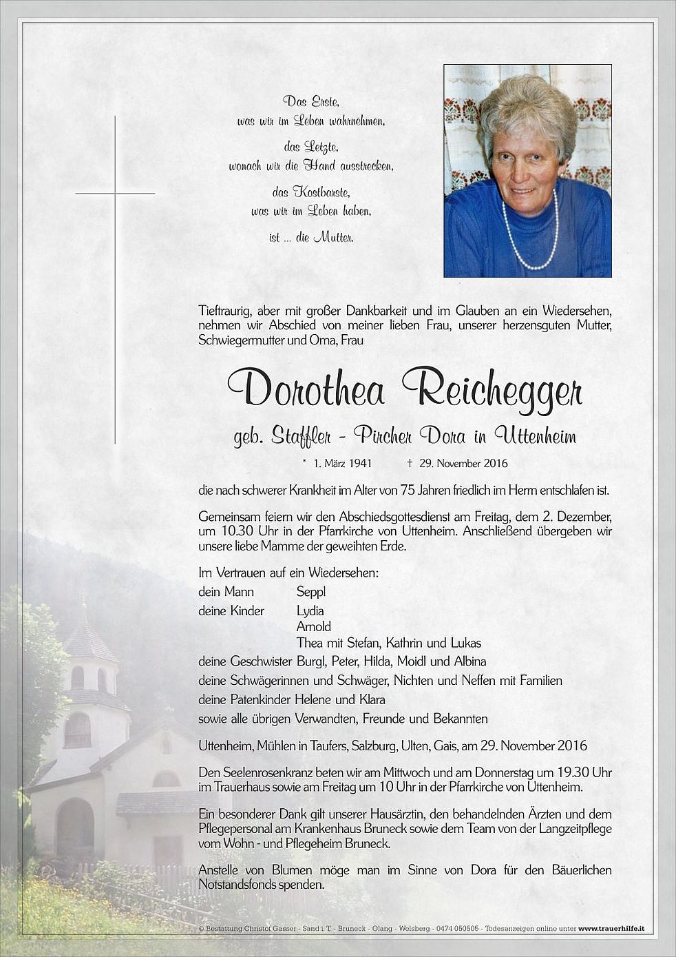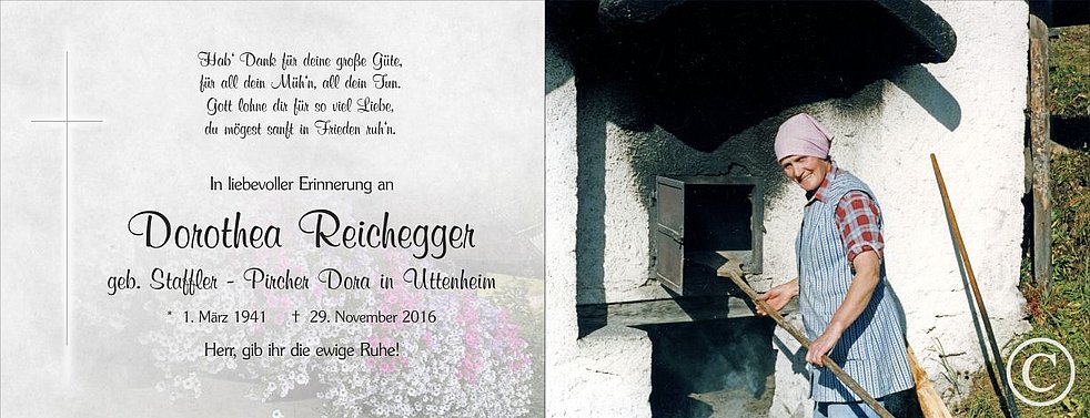 Anstelle von Blumen möge man im Sinne von Dora für den Bäuerlichen Notstandsfonds spenden.