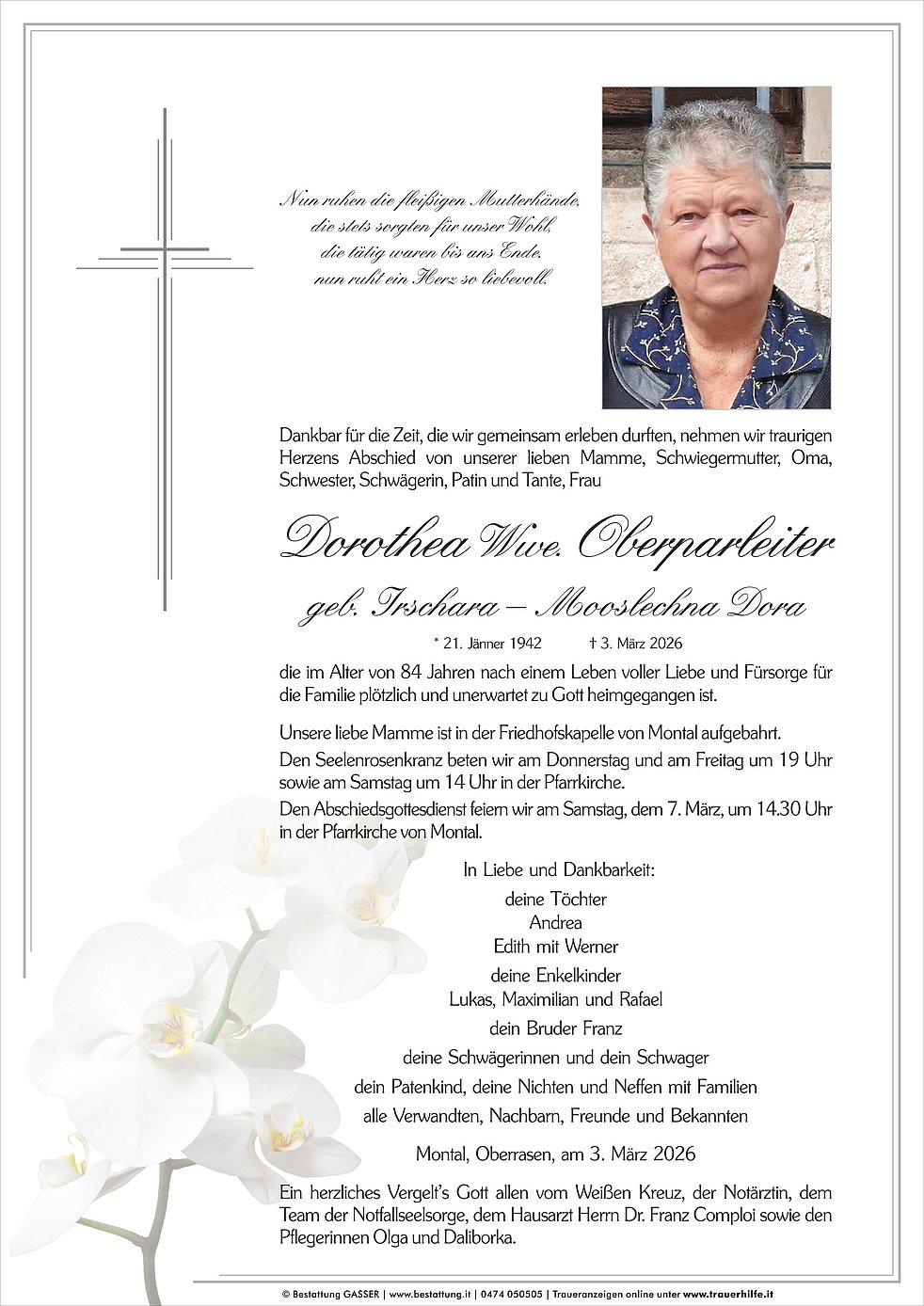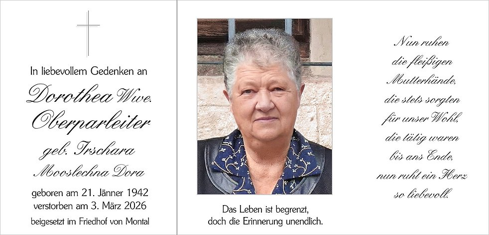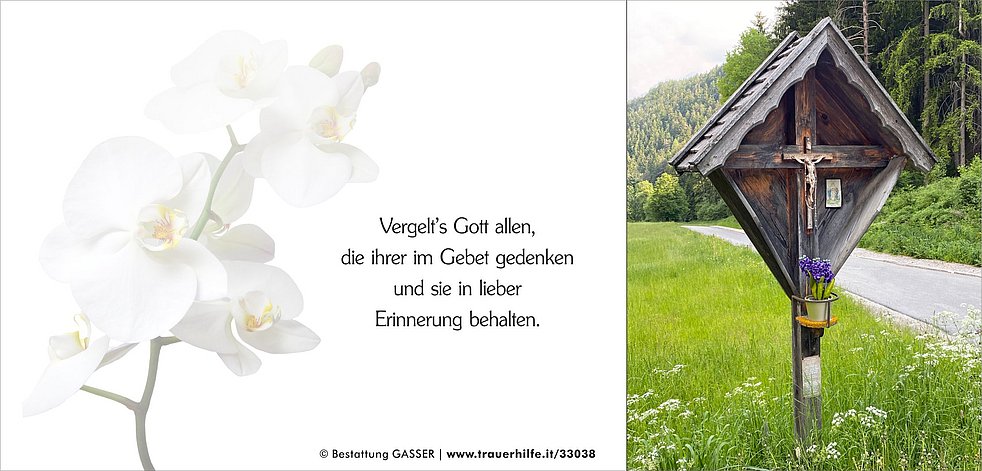 Ein herzliches Vergelt’s Gott allen vom Weißen Kreuz, der Notärztin, dem Team der Notfallseelsorge, dem Hausarzt Herrn Dr. Franz Comploi sowie den Pflegerinnen Olga und Daliborka.