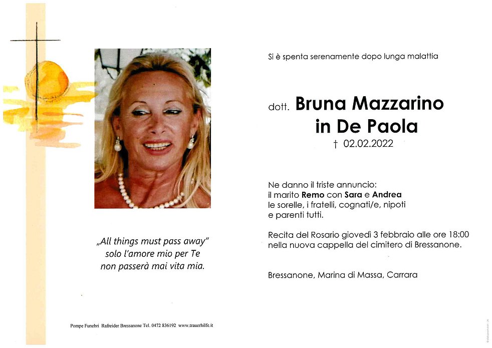 Recita del Rosario giovedì 3 febbraio alle ore 18:00 nella nuova cappella del cimitero di Bressanone.