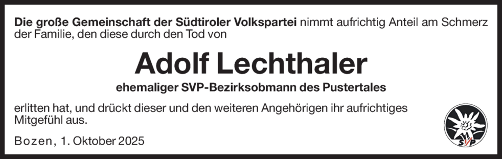 Den Trauergottesdienst mit anschließender Beisetzung feiern wir am Samstag, 4. Oktober, um 9.30 Uhr in der Pfarrkirche von Steinegg.