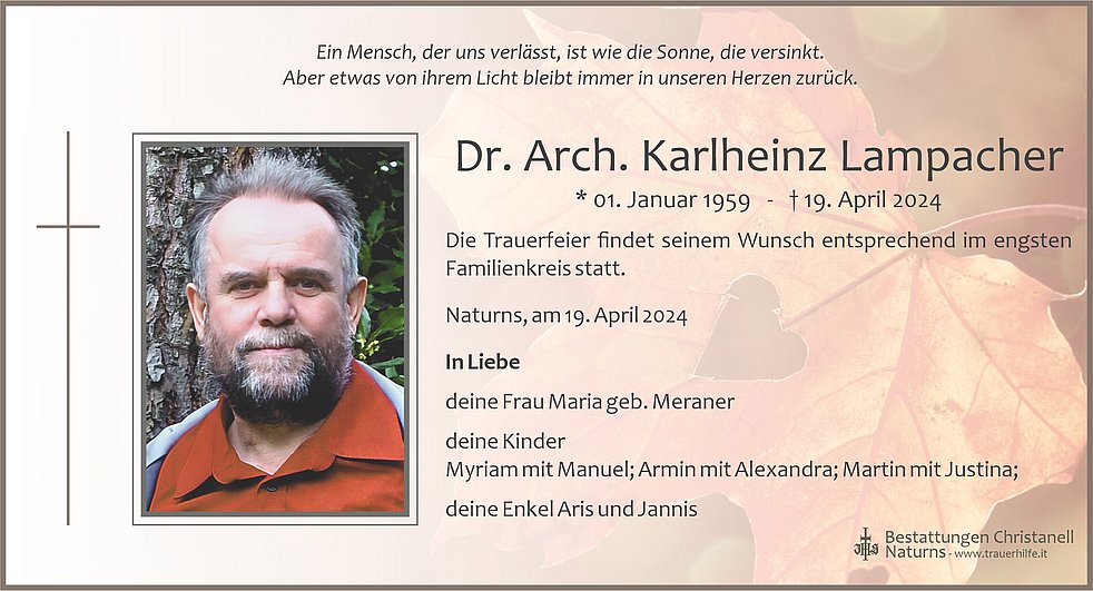 Die Trauerfeier findet seinem Wunsch entsprechend im engsten Familienkreis statt.
