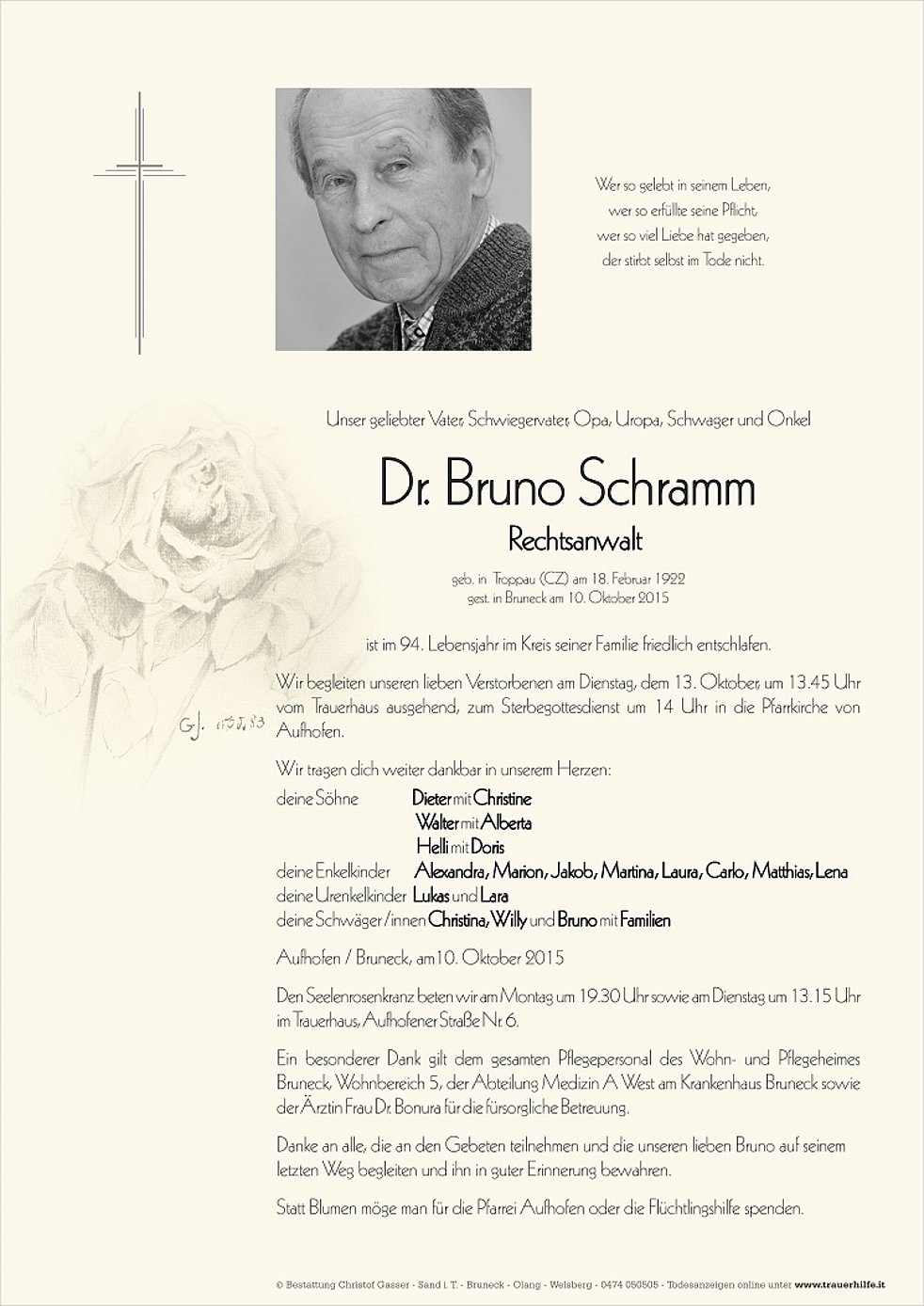 gest. in Bruneck am 10. Oktober 2015