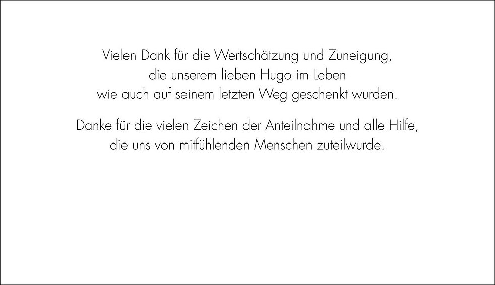 Im Sinne von Hugo, möge man für wohltätige Zwecke spenden.