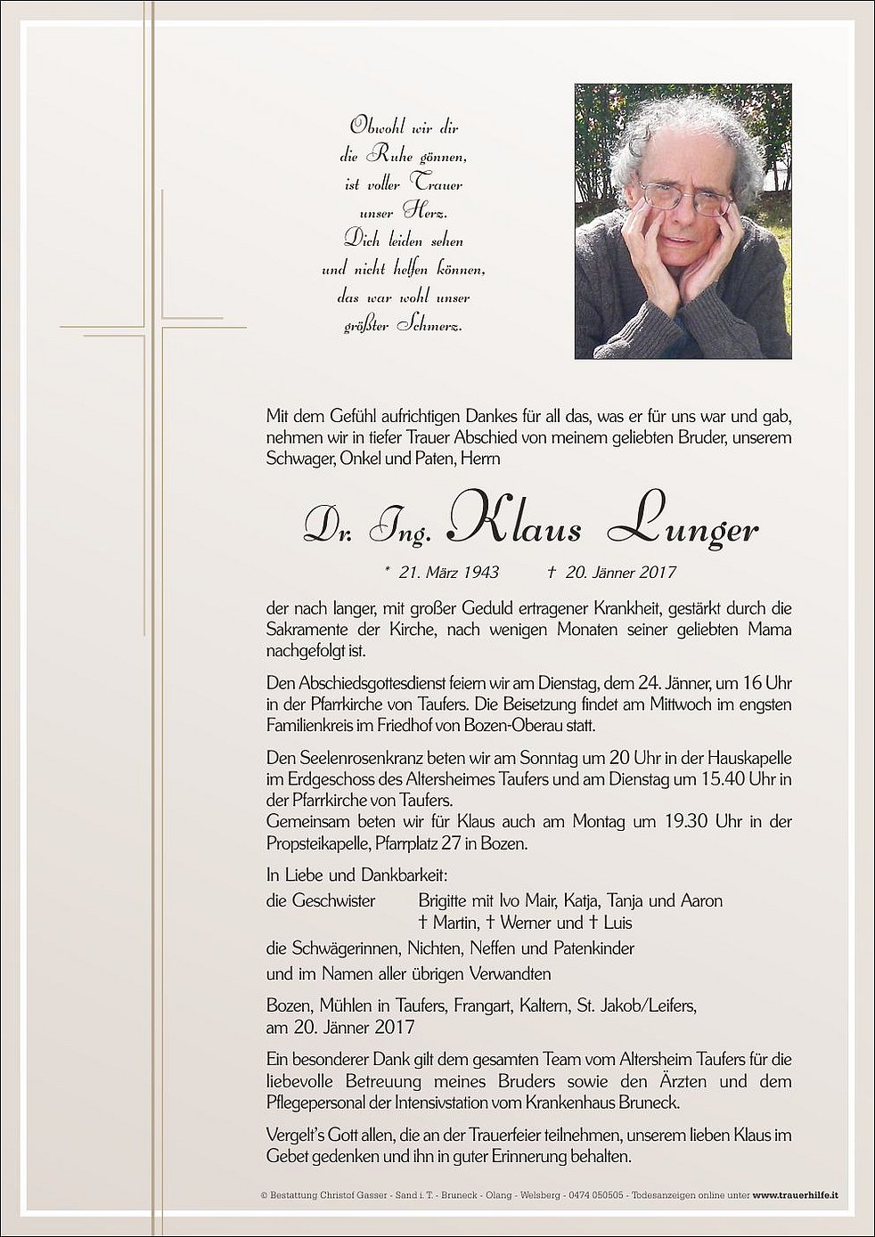 Vergelt’s Gott allen, die an der Trauerfeier teilnehmen, unserem lieben Klaus im Gebet gedenken und ihn in guter Erinnerung behalten.