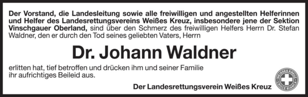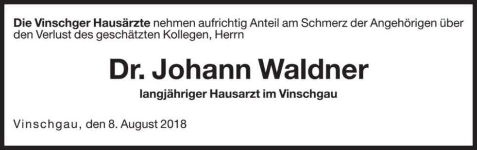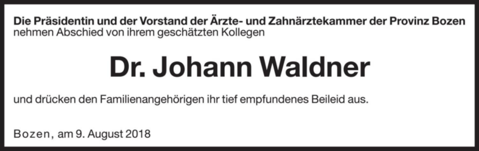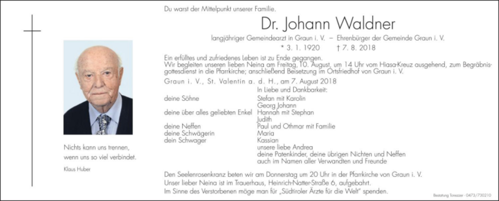 Im Sinne des Verstorbenen möge man für „Südtiroler Ärzte für die Welt“ spenden.