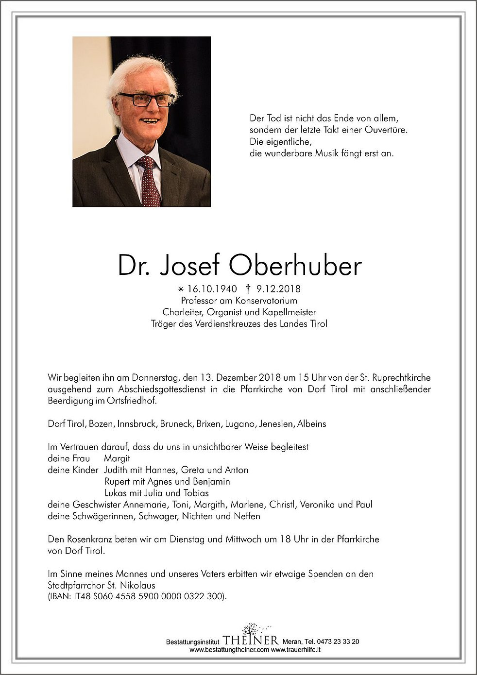 Wir begleiten ihn am Donnerstag, den 13. Dezember 2018 um 15 Uhr von der St. Ruprechtkirche ausgehend zum Abschiedsgottesdienst in die Pfarrkirche von Dorf Tirol mit anschließender Beerdigung im Ortsfriedhof.
