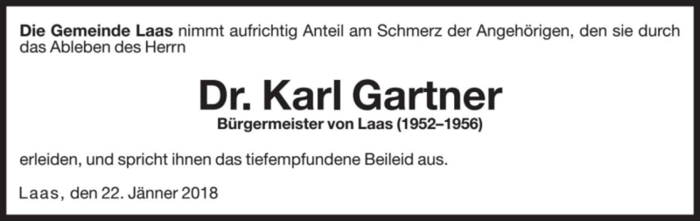 * 28.7.1923 in Laas † 21.1.2018 in Schlanders