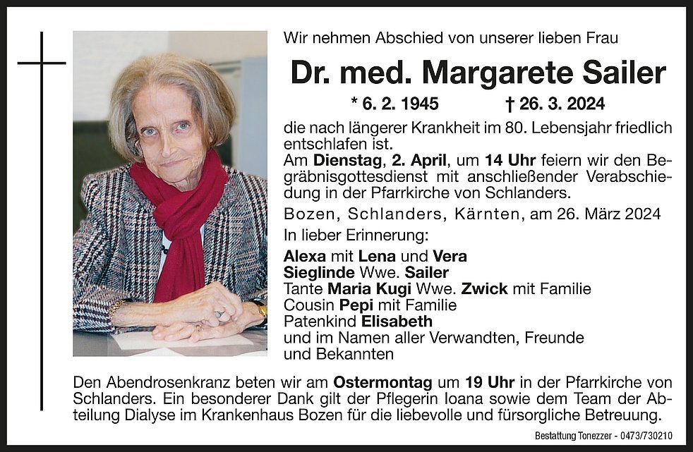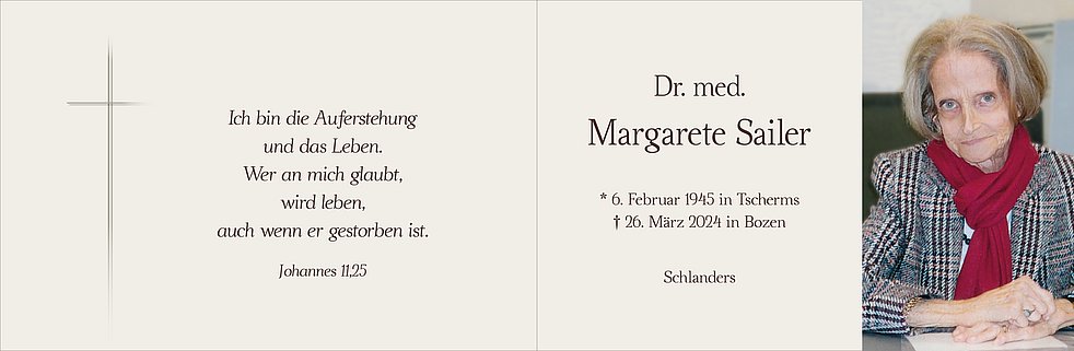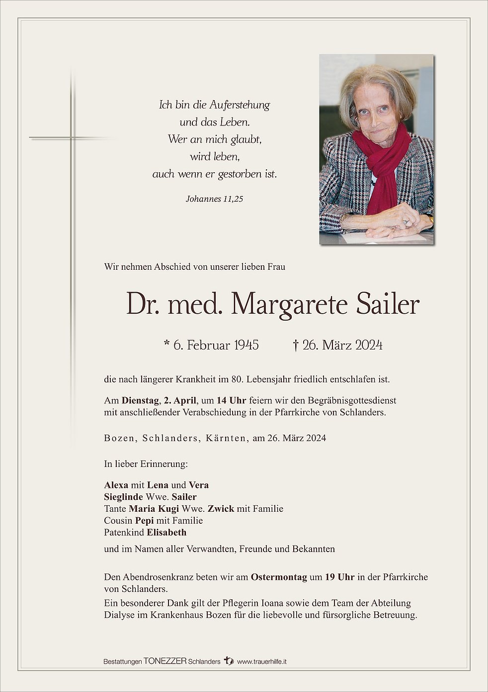 Begräbnisgottesdienst: 02.04. - 14:00 Uhr Pfarrkirche Schlanders