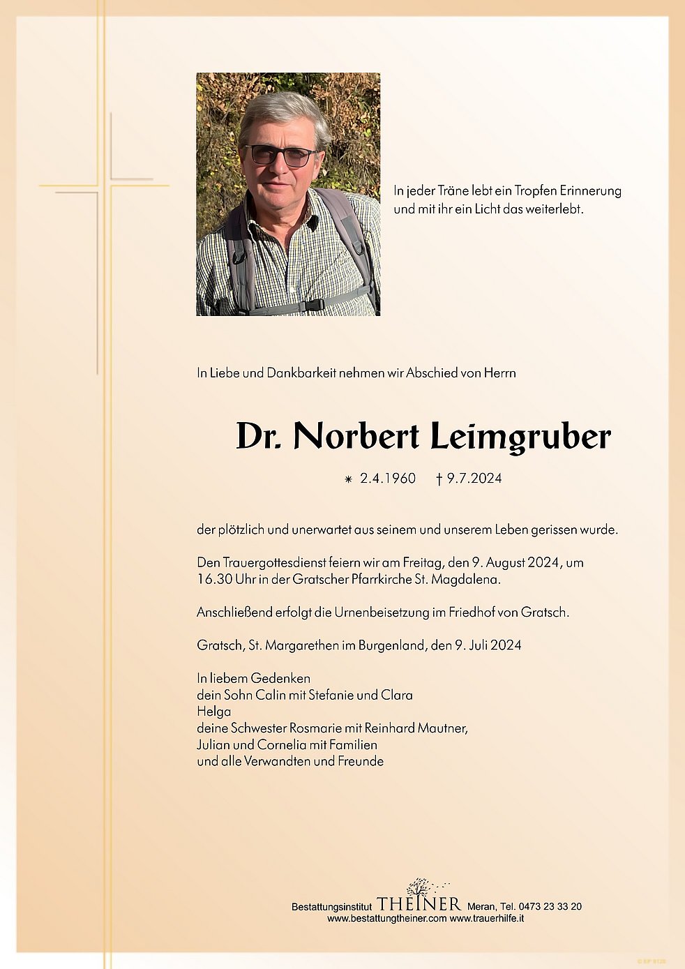 Den Trauergottesdienst feiern wir am Freitag, den 9. August 2024, um 16.30 Uhr in der Gratscher Pfarrkirche St. Magdalena.