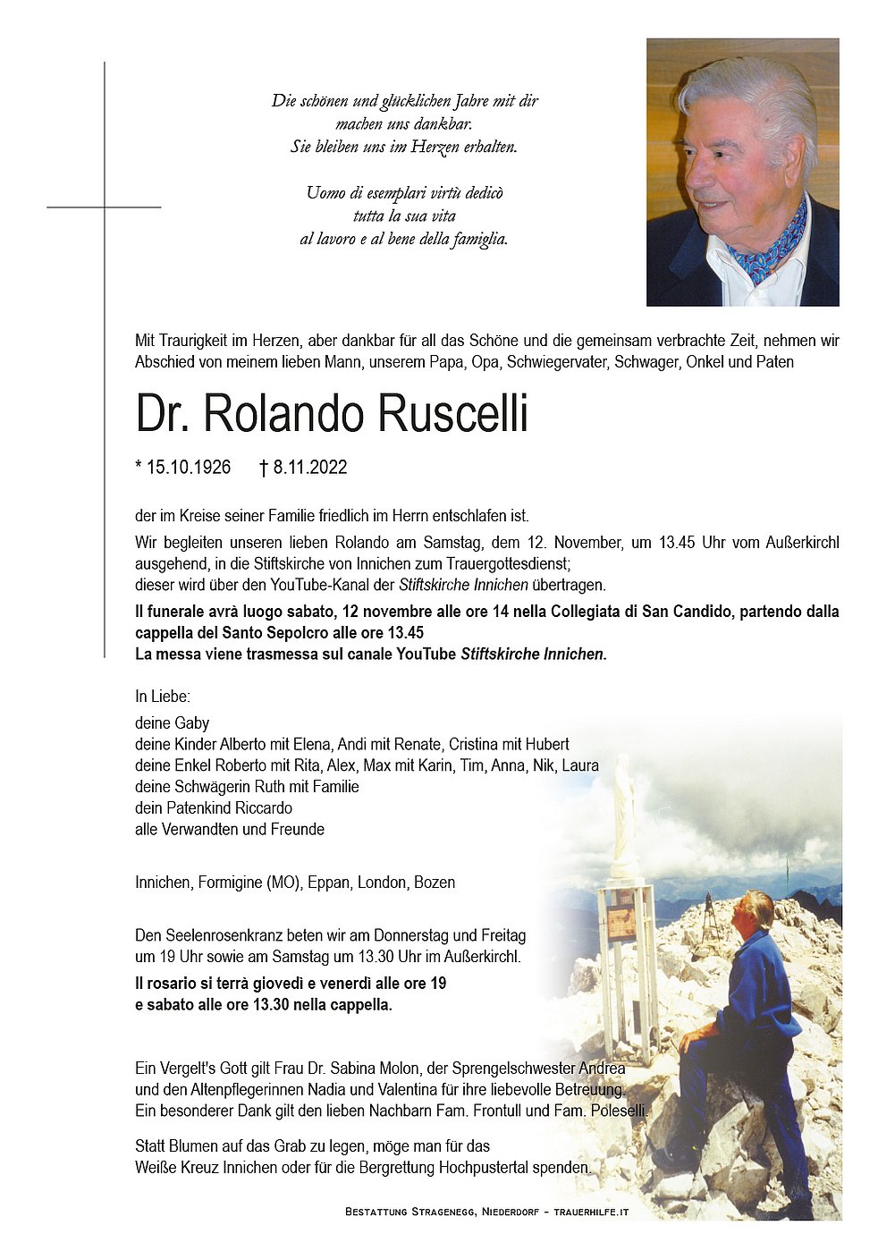 Wir begleiten unseren lieben Rolando am Samstag, dem 12. November, um 13.45 Uhr vom Außerkirchl ausgehend, in die Stiftskirche von Innichen zum Trauergottesdienst;