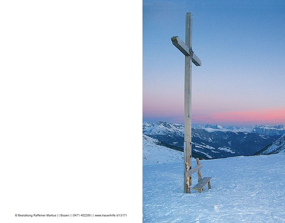 Den Trauergottesdienst feiern wir am Donnerstag, dem 13. September, um 16 Uhr in der St. Anna Kirche im Friedhof von St. Ulrich mit anschließender Urnenbeisetzung.