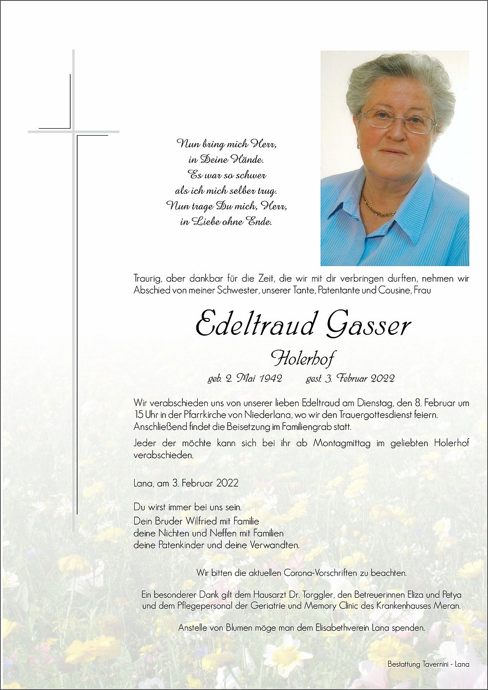 Unser aufrichtiges Beileid zum Ableben deiner lieben Schwester Edeltraud. Ich werde sie immer in guter Erinnerung behalten und wünsche euch viel Kraft.
