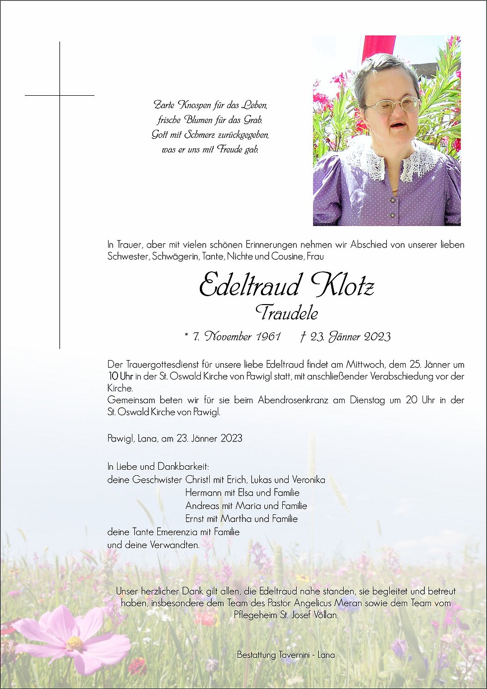 Edeltraud sanfte Seele moege in Himmel die ewige Glueckseligkeit finden Leb wohl