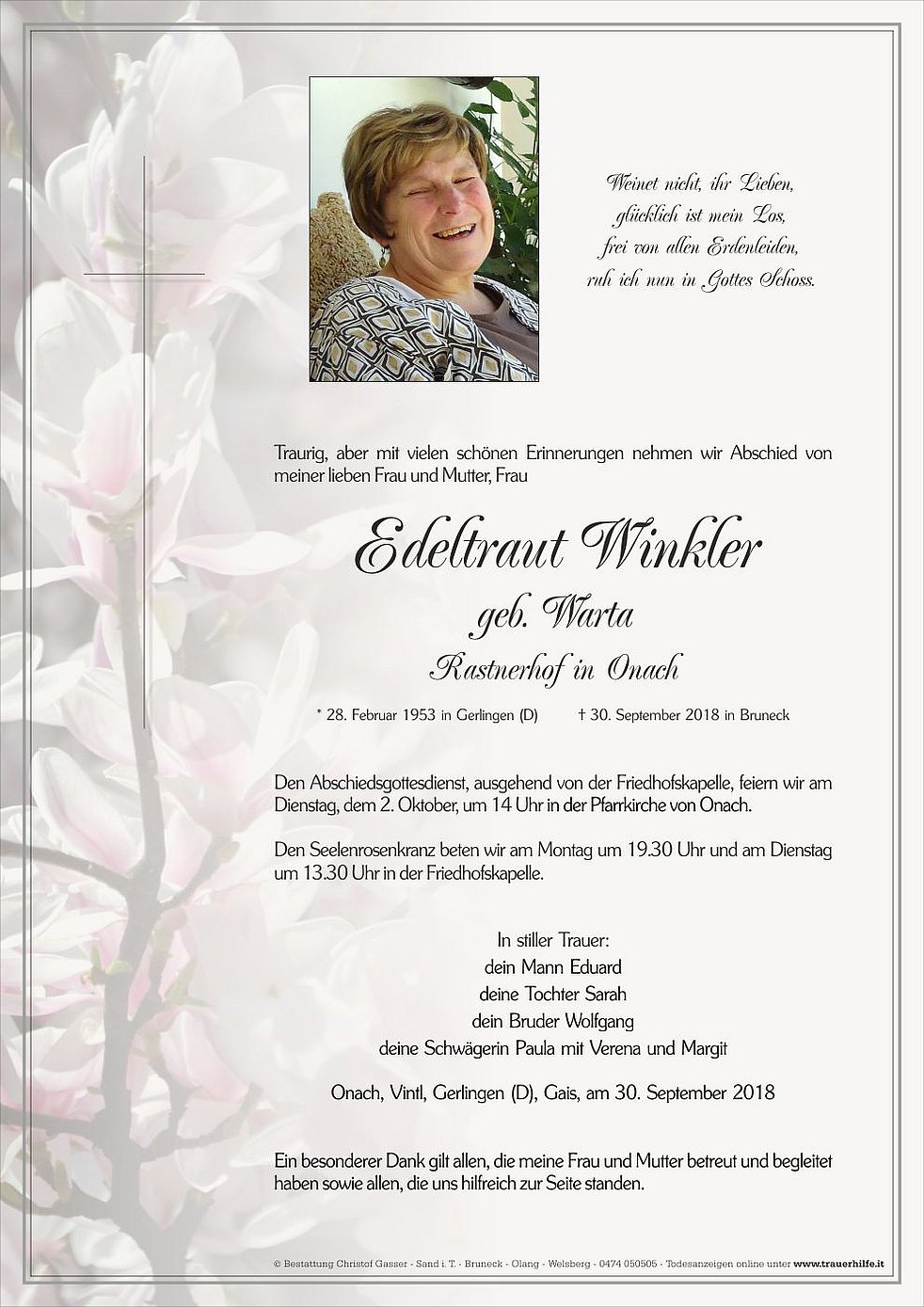 * 28. Februar 1953 in Gerlingen (D) † 30. September 2018 in Bruneck