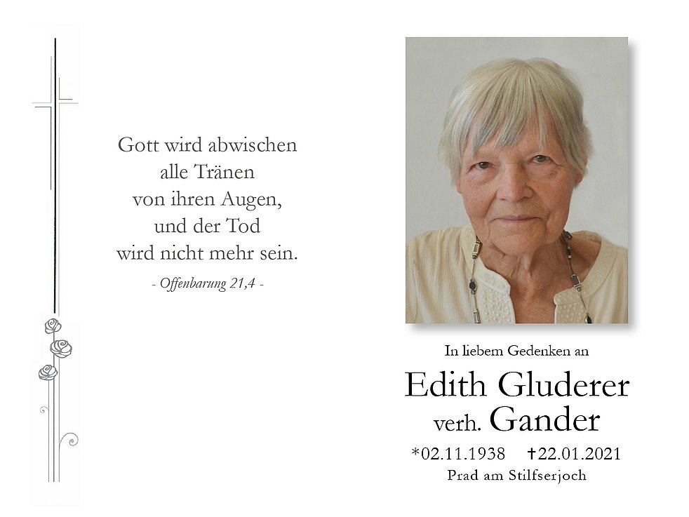 Trauerfeier: 29.01. - 14:00 Uhr Pfarrkirche Maria Königin Prad am Stilfserjoch
