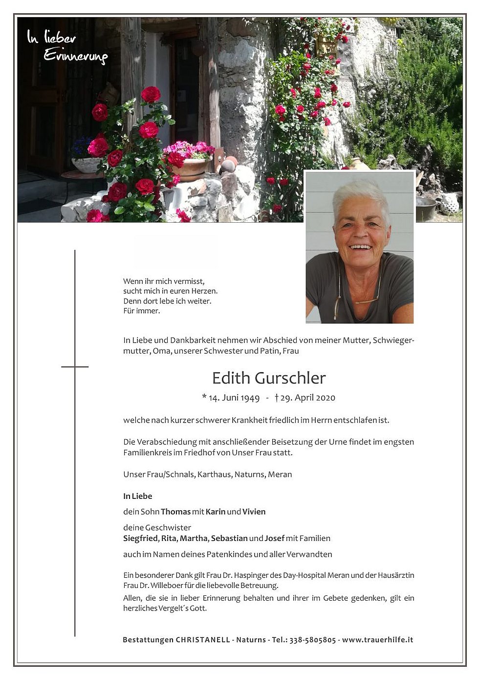 Allen, die sie in lieber Erinnerung behalten und ihrer im Gebete gedenken, gilt ein herzliches Vergelt´s Gott.