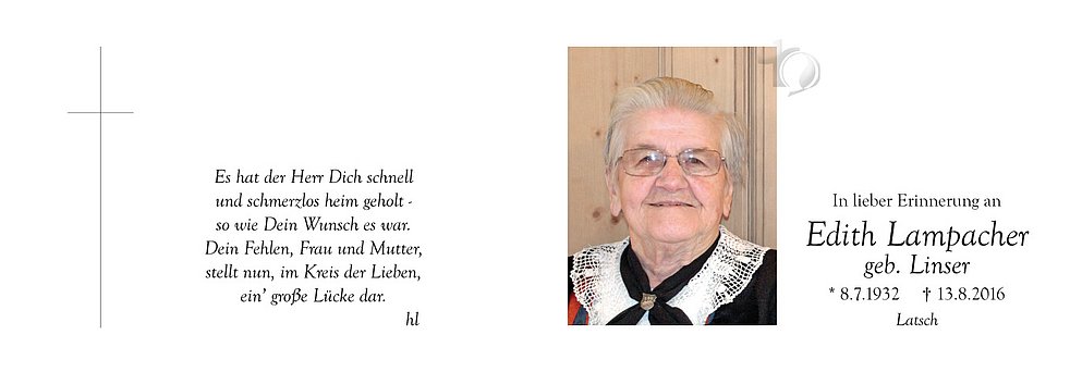 Dankbar für die lange Zeit, die wir gemeinsam erleben durften, nehmen wir traurigen Herzens Abschied von meiner lieben Frau, unserer guten Mutter, Schwiegermutter, Oma und Uroma, Schwester, Schwägerin, Tante und Patin, Frau