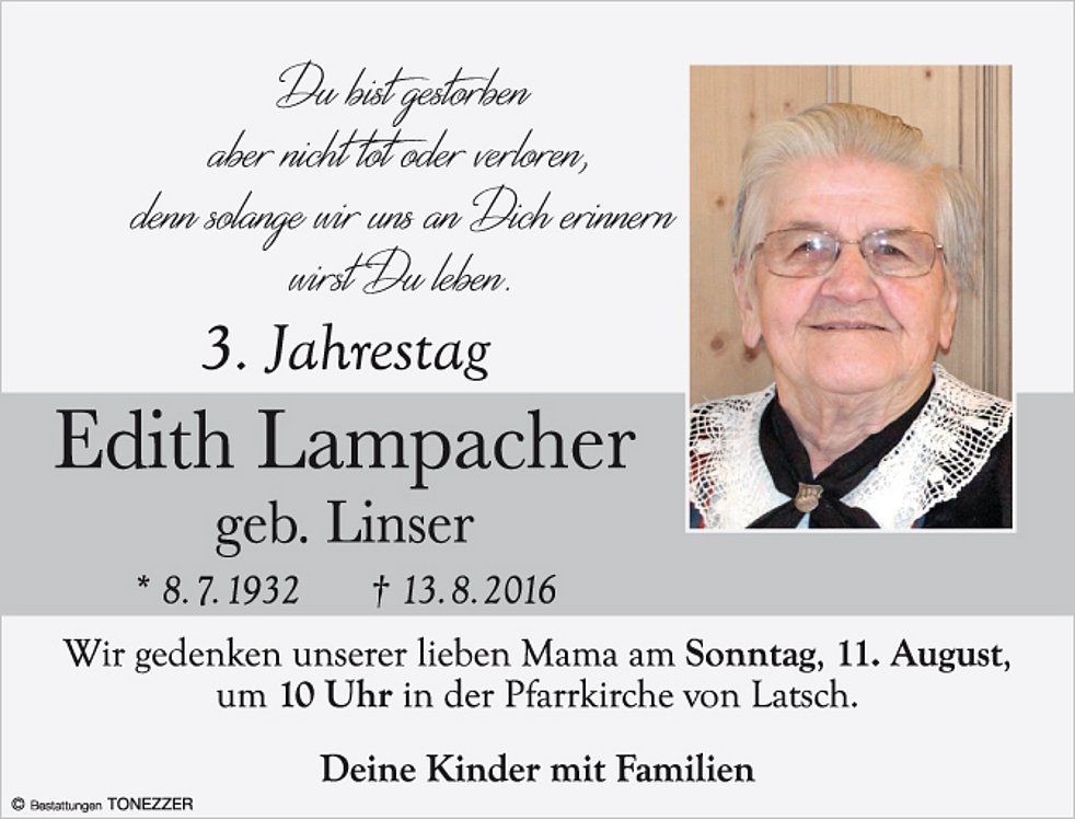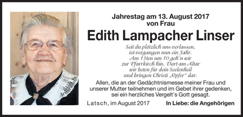 Den Rosenkranz für unsere liebe Verstorbene beten wir am Donnerstag und Freitag um 19.30 Uhr und am Samstag um 13.30 Uhr in der Pfarrkirche von Latsch.