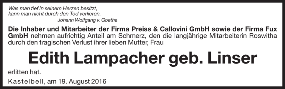 Statt Blumen zu spenden, gedenke man wohltätiger Zwecke.