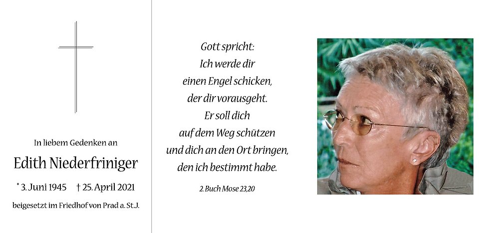 Die Urnenbeisetzung findet zu einem späteren Zeitpunkt im Ortsfriedhof von Prad statt.