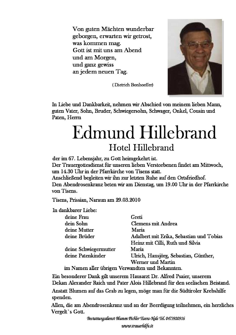 Anstatt Blumen auf das Grab zu legen, möge man für die Südtiroler Krebshilfe